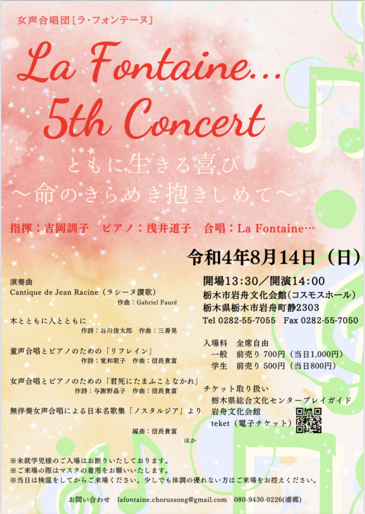 宇都宮中央女子高等学校合唱部OGを中心に、2016年12月に結成。音楽監督に吉岡訓子先生を迎え、2017年2月、本格的な活動をスタート。東京と宇都宮にて練習を重ね、合同練習を実施している。「Fontaine」は、フランス語で「泉」。泉のように生命力あふれる場所から、歌を通じて元気と文化をお届けしたい。そして完結することなく、心に響く歌を歌い続けたいとの思いからこの団名を名付け、日々練習に励んでいる。栃木県内でのコンサートの他、過去には新潟県長岡市や岩手県陸前高田市など、県内外でのボランティア演奏も行った。