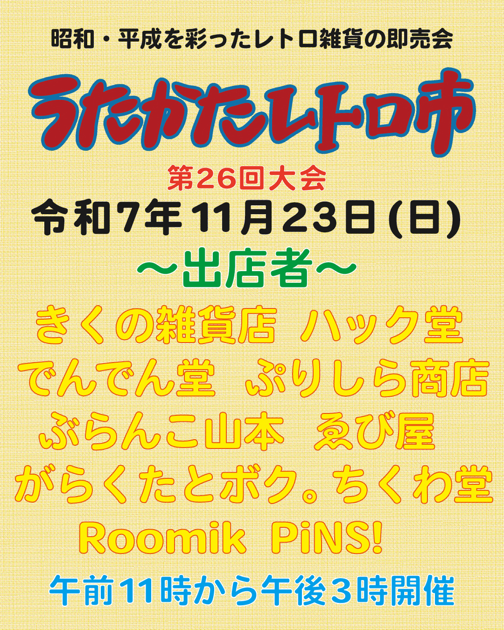毎回様々なジャンルのレトロ雑貨を扱う出店者が集い、