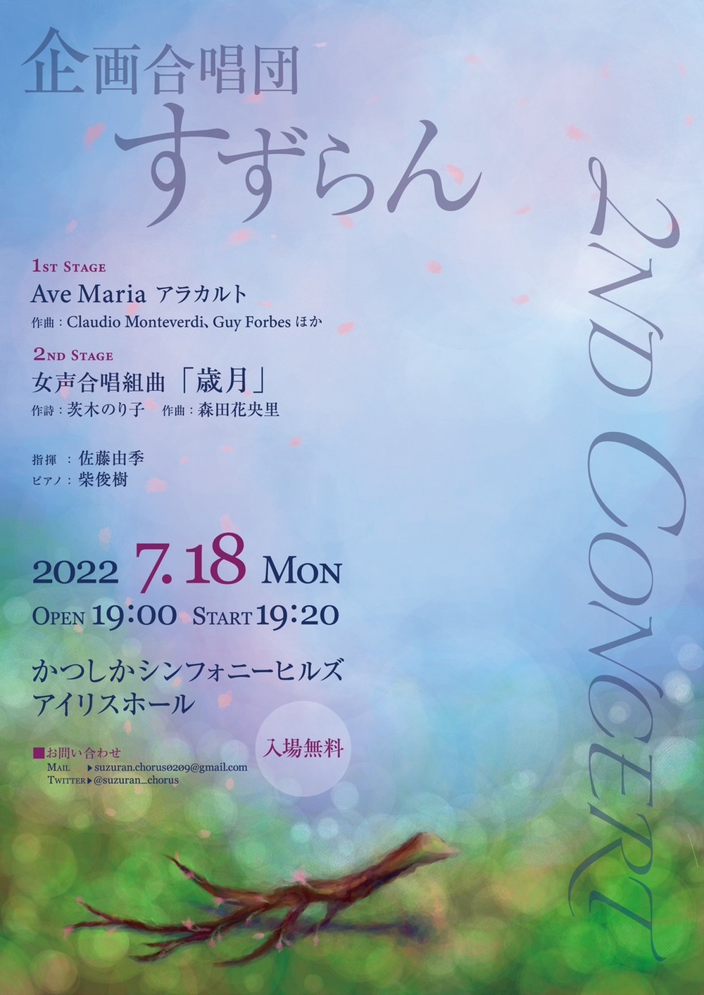 その他のお問い合わせ先:メールアドレス:suzuran.chorus0209@gmail.com