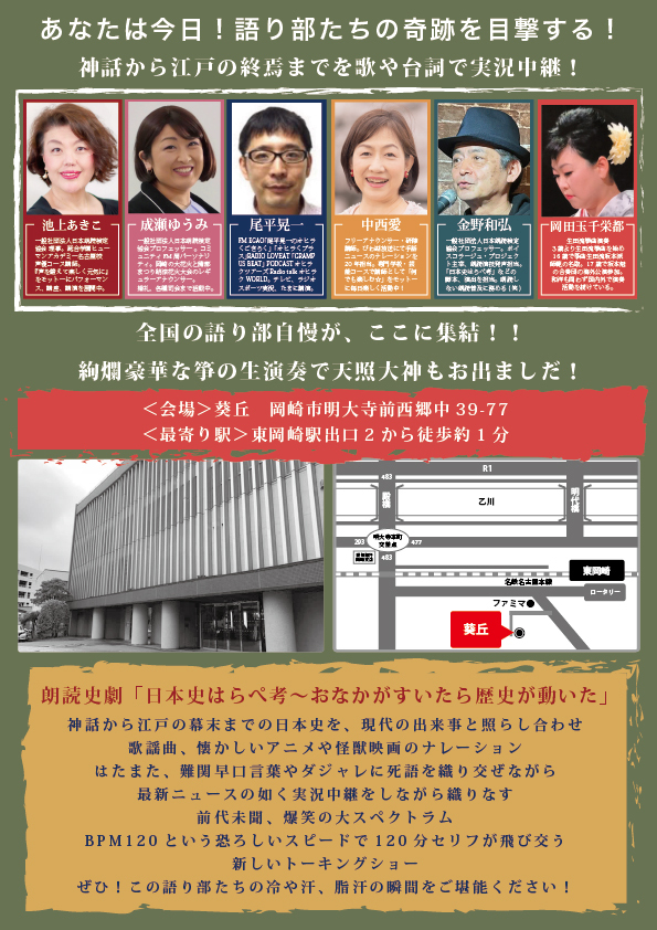 <出演者>語り部:池上あきこ、成瀬ゆうみ、尾平晃一、中西愛、金野和弘