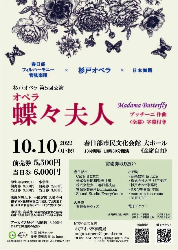 2022年10月10日 杉戸オペラが主催した【蝶々夫人】公演。