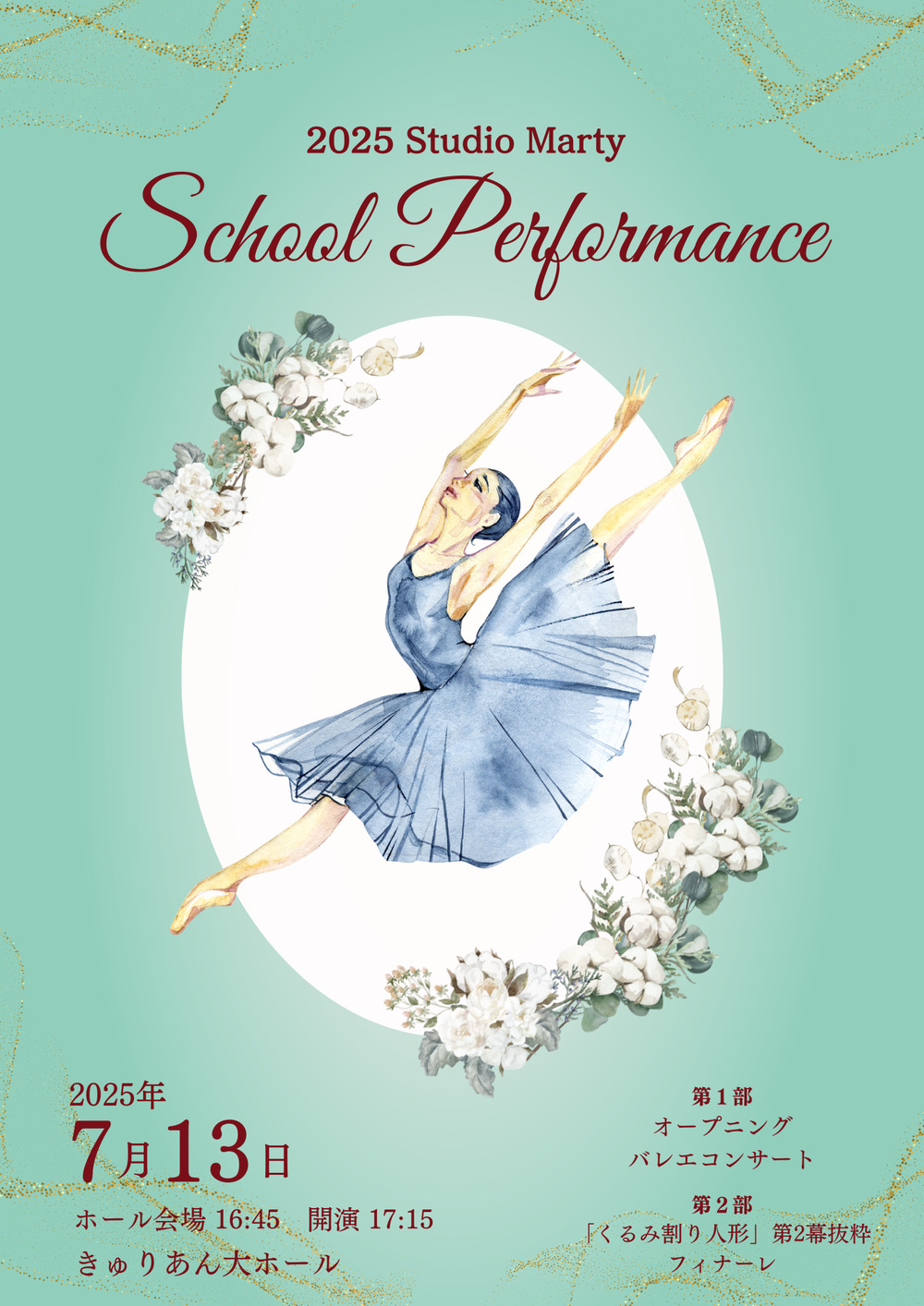 2025年7月13日、スタジオマーティこどもバレエスクール発表会を「きゅりあん」にて開催いたします。