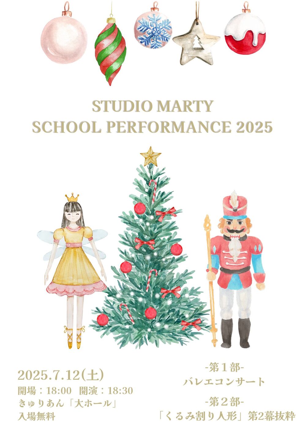 2025年7月12日、スタジオマーティこどもバレエスクール発表会を「きゅりあん」にて開催いたします。