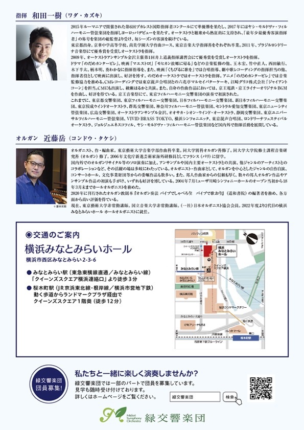 緑交響楽団は1984年に創立。横浜北部を中心に活動しております。今回は、70回と節目の演奏会で、横浜みなとみらいホールにて演奏会を行います。