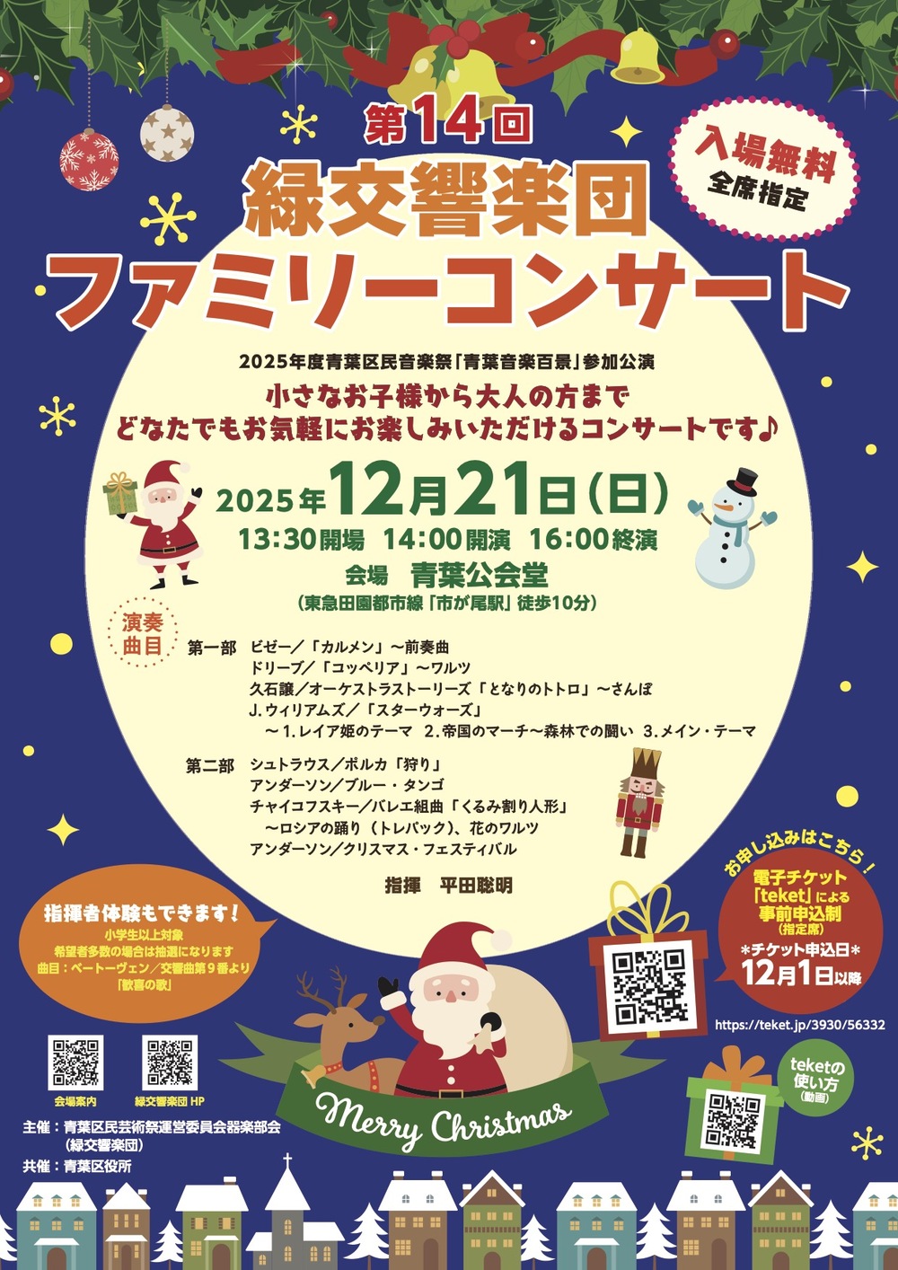 定期演奏会では小さなお子さんの入場を制限、あるいは会場の大きさ等の関係で青葉区から離れますが、ファミリーコンサートは小さなお子さん大歓迎でクラシック音楽を地域の皆さんに親しんでいただきたく開催致します。