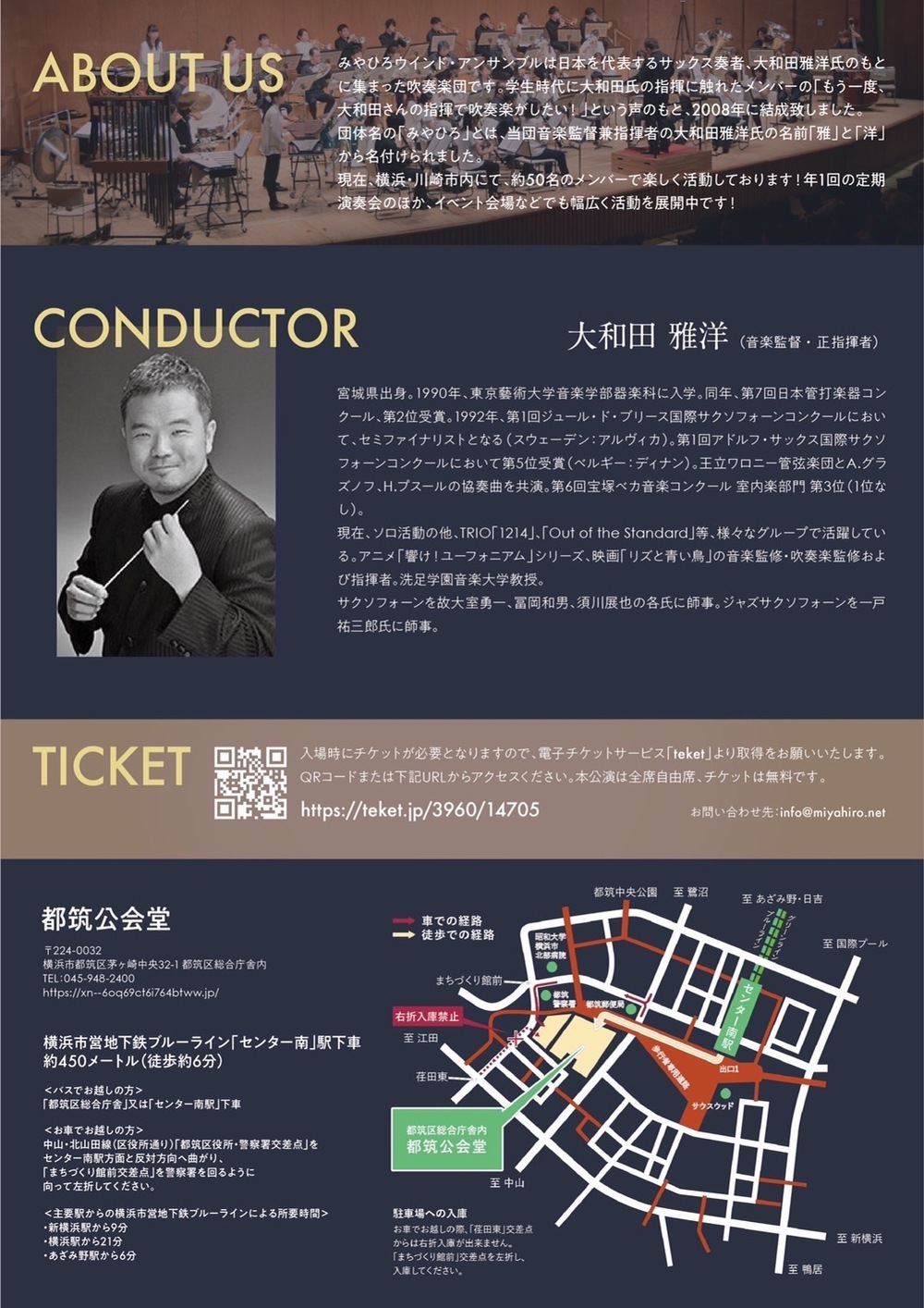 団体名の「みやひろ」とは、当団音楽監督指揮者である大和田雅洋氏の名前「雅」「洋」から名付けられました。