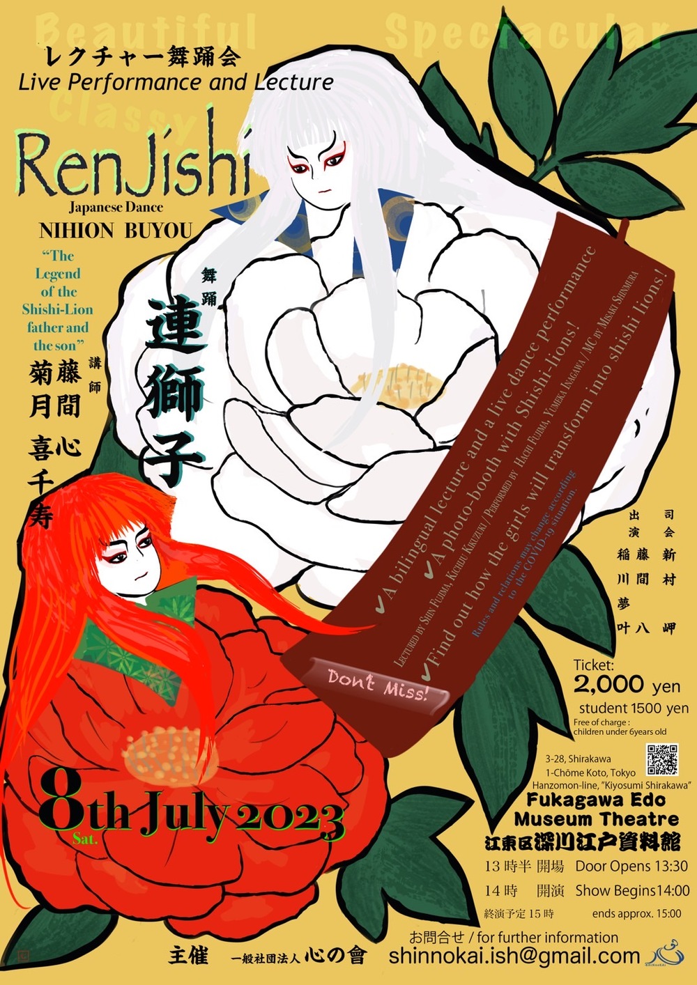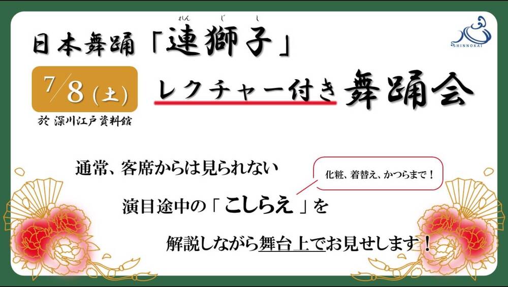 「連獅子」を踊りますのは、心の會所属の若手2名です。日本舞踊が大好きな2人の熱い想いがつまった舞台もご堪能くださいませ。