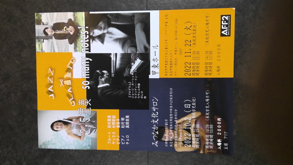 フルート松村真美 サックス杉野幹起 ピアノ東桂子 ピアノ松村明 チェロ高岡奈美