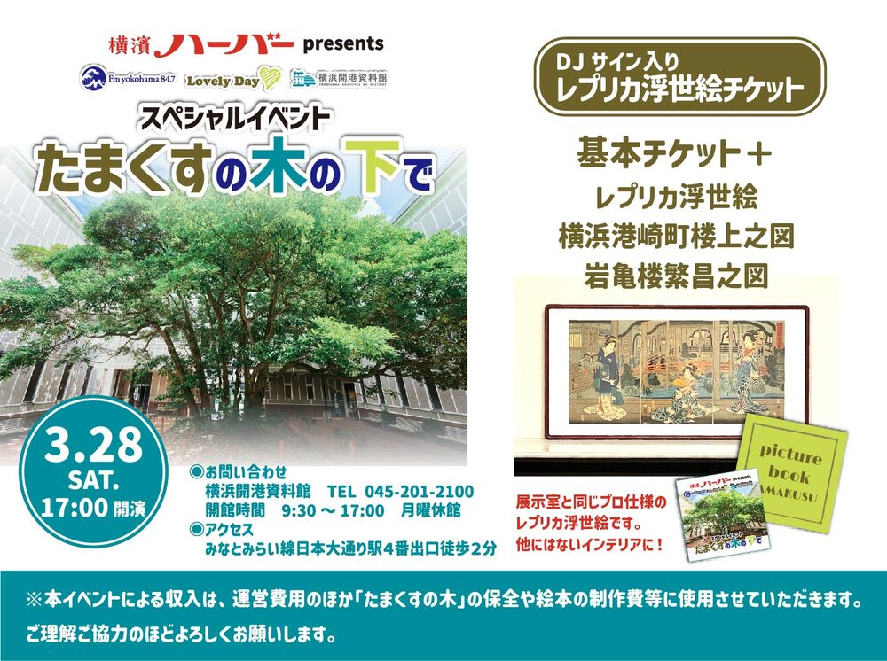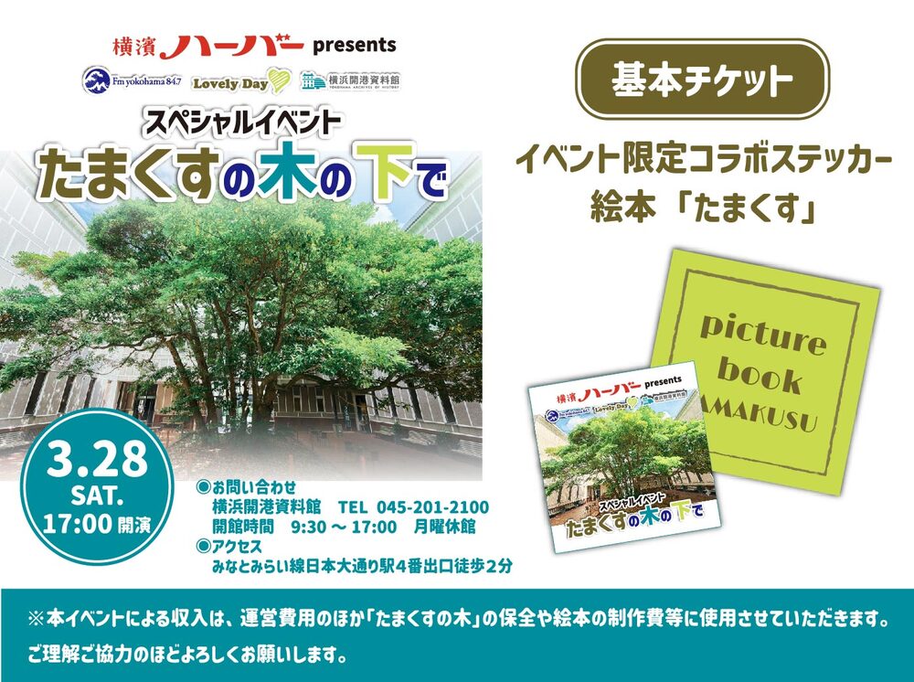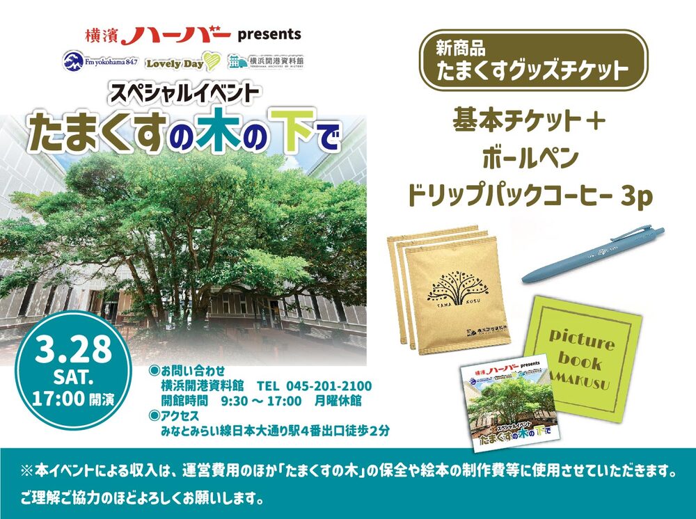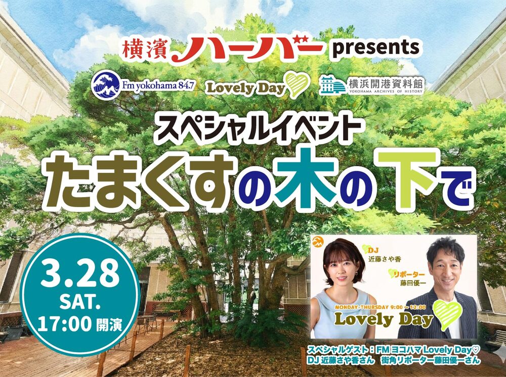 2025年に7月、横浜開港資料館中庭にあるペリー上陸や横浜開港を見守った「たまくすの木」にバリアフリーデッキが完成しました。また、2026年4月1日には旧横浜英国総領事館2階に新展示室がオープンし見学エリアが充実します。4月の新展示室一般公開に先立ち、FMヨコハマLovelyDay♡とのコラボ企画のスペシャルイベントとして、当館と連携する横浜商科大学の学生がゼミ活動の一環で制作している「たまくすの木」を紹介する絵本の発表会をおこないます。