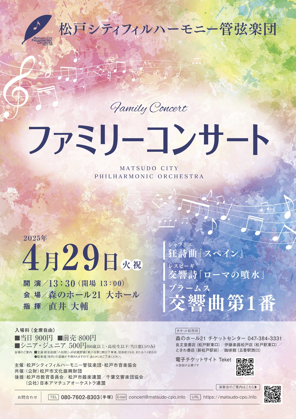 昭和55年に設立された、松戸市民を中心としたアマチュアオーケストラです。今回はブラームスの交響曲第1番をメインに据えて、ヨーロッパ各国を巡る音楽の旅にご案内します。フランス、スペイン、イタリア、ドイツ・・・色とりどりの音楽をファミリーでお楽しみください!