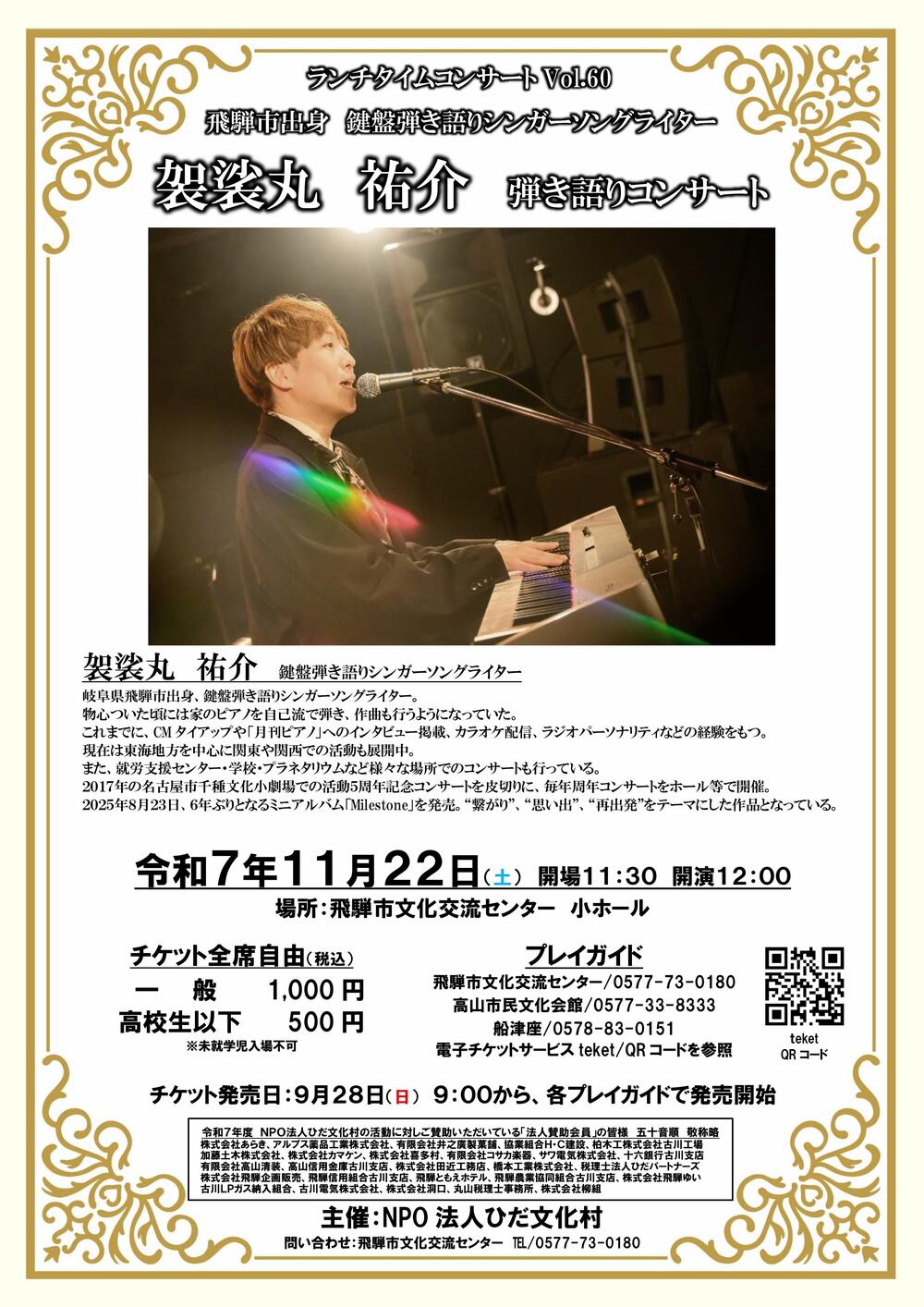 飛騨市出身のアーティスト「袈裟丸 祐介」による、弾き語りコンサート