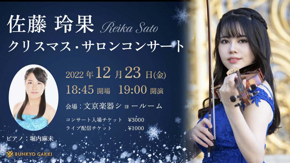 ヴァイオリニスト佐藤玲果さんによるサロンコンサートを12月23日(金)に開催いたします。