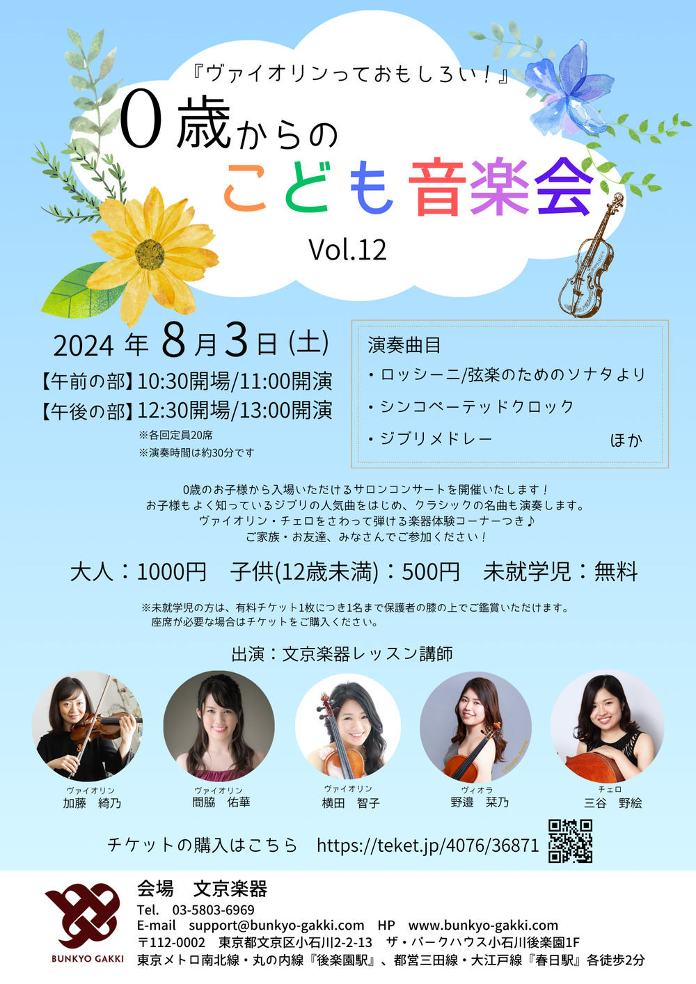 ヴァイオリン・チェロをさわって弾ける楽器体験コーナーつき♪