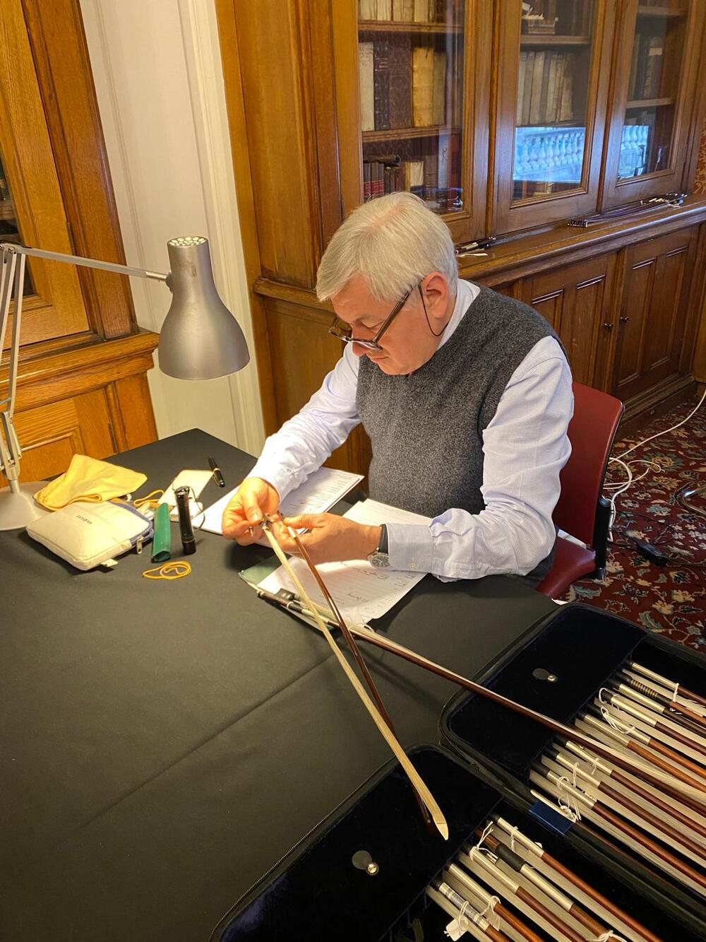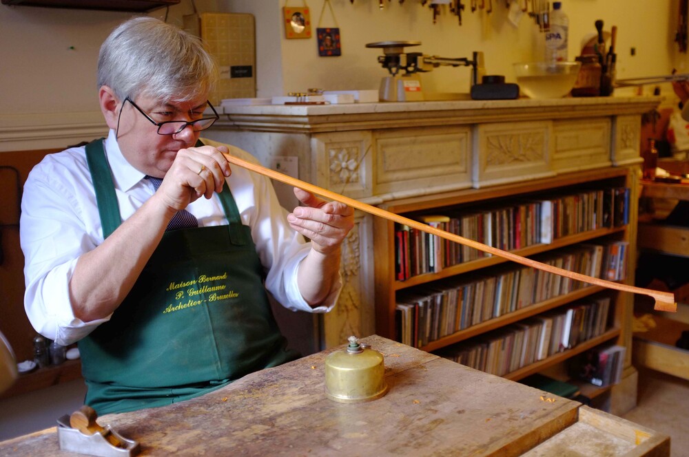 前半では、ギヨーム氏の豊かな経歴をたどりながら、弓作りの理念、伝統的なフレンチ・ボウの系譜、さらには真贋を見極める眼について、名匠自らが語り尽くします。
