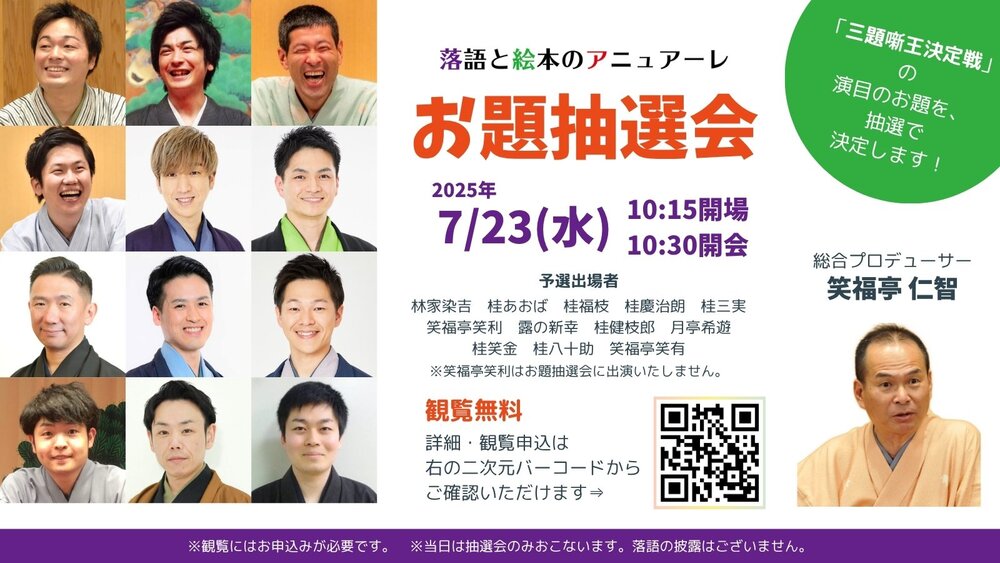 演目のお題を決定する抽選会を、昨年に引き続き今年も無料一般公開で開催します!