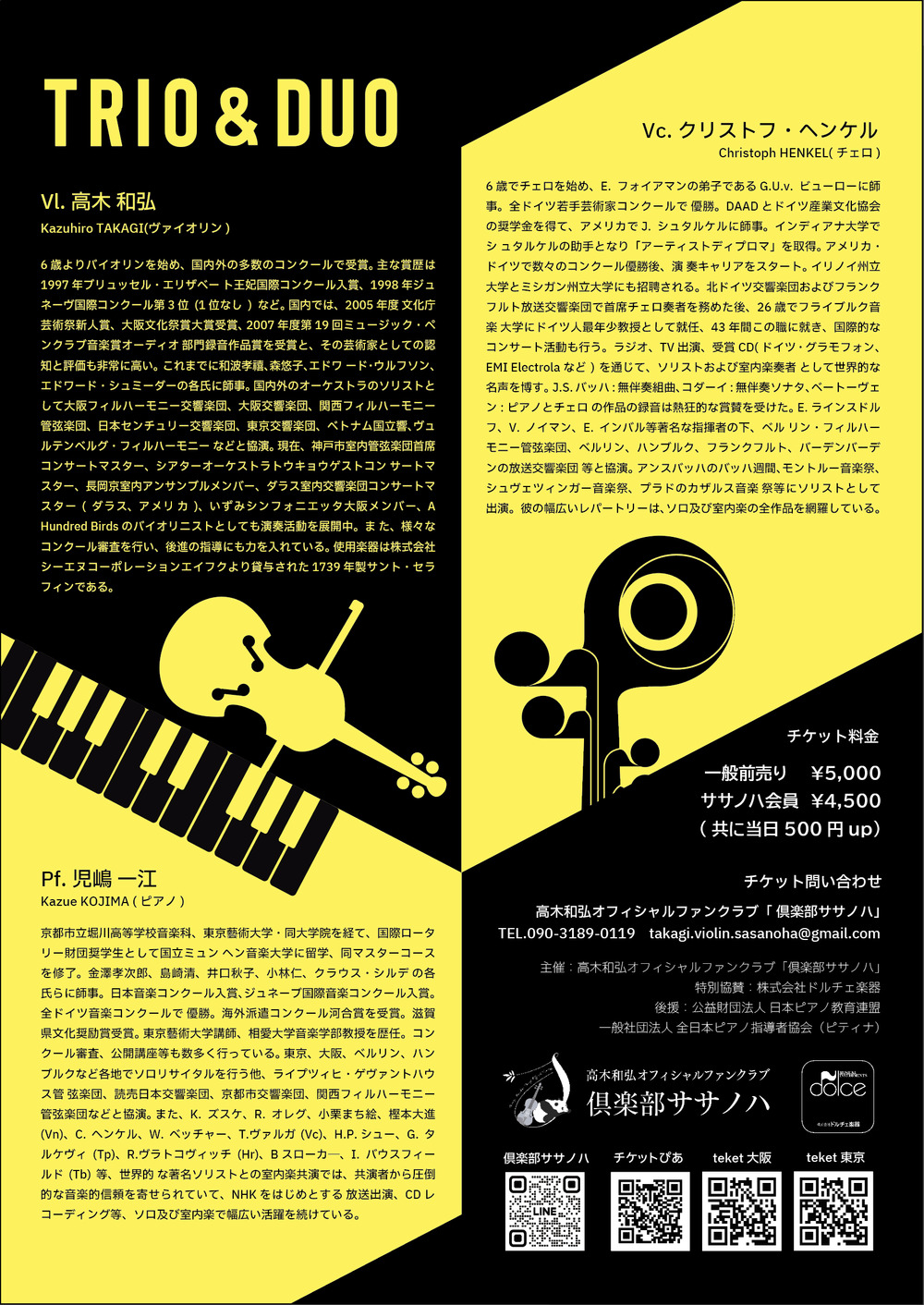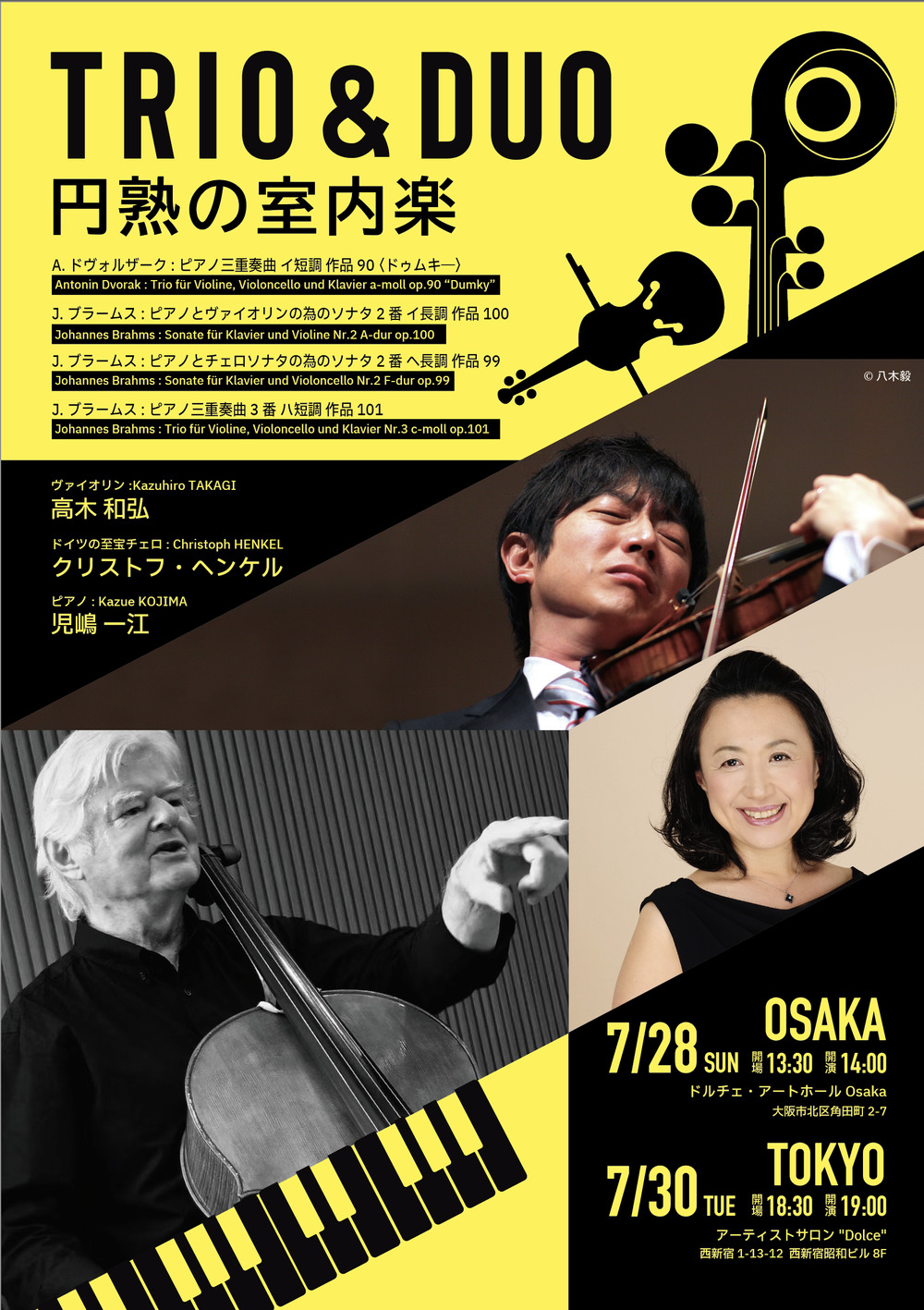 ドイツの至宝チェロ:クリストフ・ヘンケル ヴァイオリン:高木和弘、ピアノ:児嶋一江による円熟の室内楽