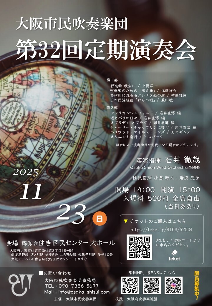 今年は、団員指揮に加え、客演指揮としてOsaka Shion Wind Orchestraの石井徹哉先生をお迎えし