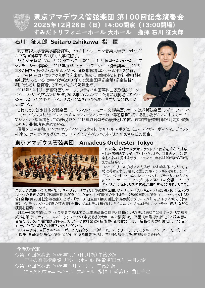 東京アマデウス管弦楽団は、1973年結成のアマチュアオーケストラです。