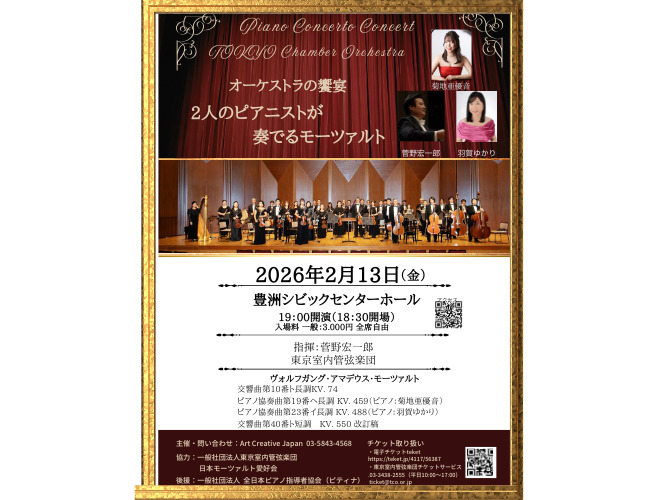 最近ヨーロッパでの活動も多いマエストロ菅野の腕が鳴り響く、モーツァルトが大輪の花二つをバックアップしていきます!