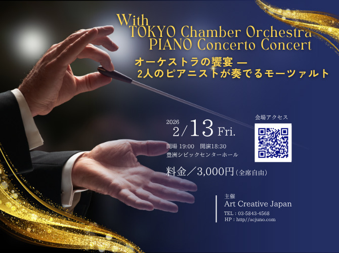 豊洲シビックセンターホールの夜景が特に美しいバレンタインデーの前日、オールモーツァルトプログラムで演奏されるロマンティックナイト。