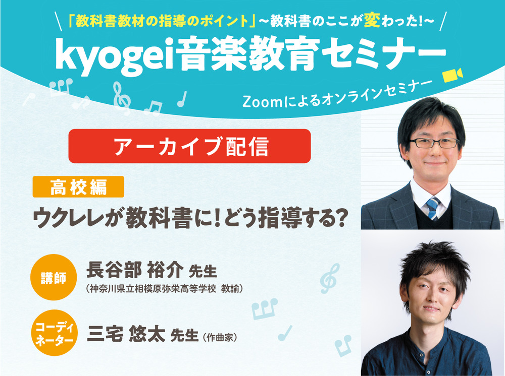 2022年10月2日(日)に開催された『kyogei音楽教育セミナー 高校編「ウクレレが教科書に!どう指導する? 」』の録画映像をご覧いただけます。