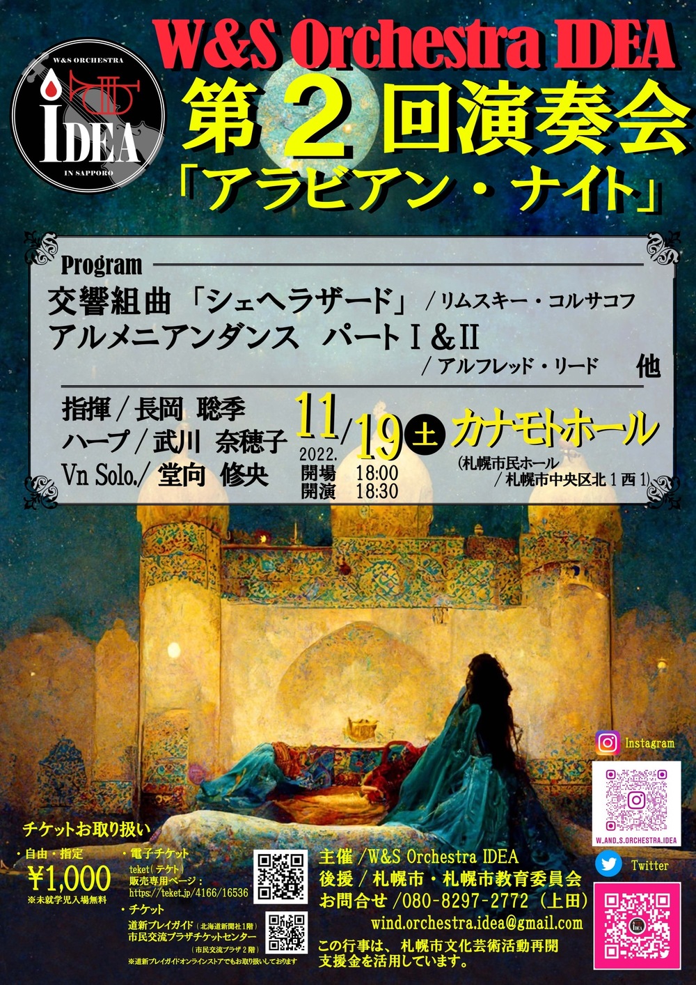 W&S Orchestra IDEA (旧ウィンド・オーケストラ・イデア)は一つのテーマを元に演奏会曲目を決定しています。今回は「アラビアン・ナイト」をテーマに演奏致します。