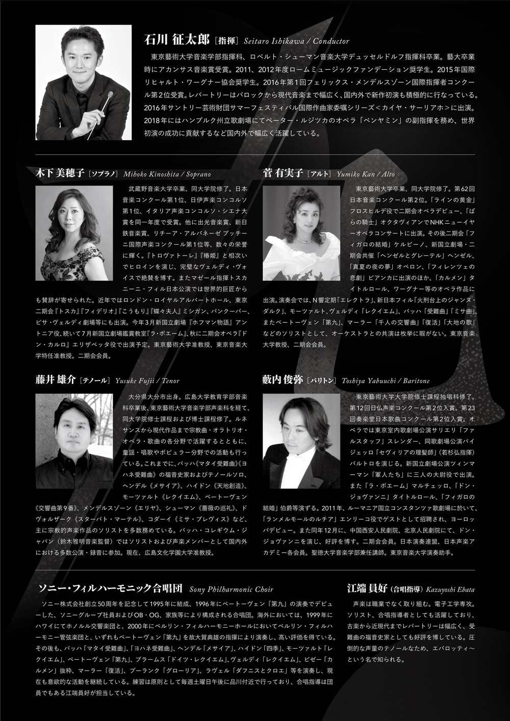 独唱: Sop.木下 美穂子 Alto 菅 有実子 Ten.藤井 雄介 Bar. 薮内 俊弥
