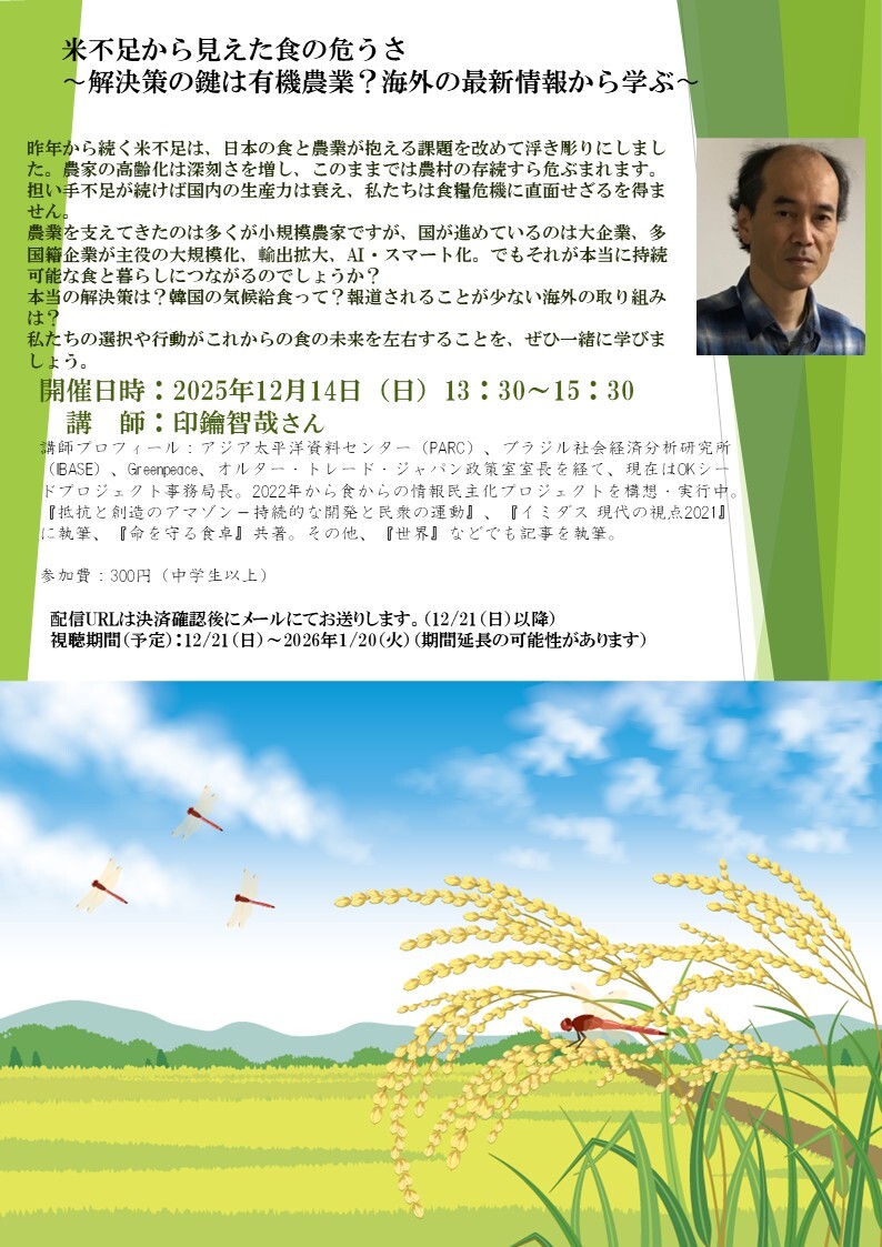 プロフィール:アジア太平洋資料センター(PARC)、ブラジル社会経済分析研究所(IBASE)、Greenpeace、オルター・トレード・ジャパン政策室室長を経て、現在はOKシードプロジェクト事務局長。2022年から食からの情報民主化プロジェクトを構想・実行中。『抵抗と創造のアマゾン-持続的な開発と民衆の運動』、『イミダス 現代の視点2021』に執筆、『命を守る食卓』共著。その他、『世界』などでも記事を執筆。