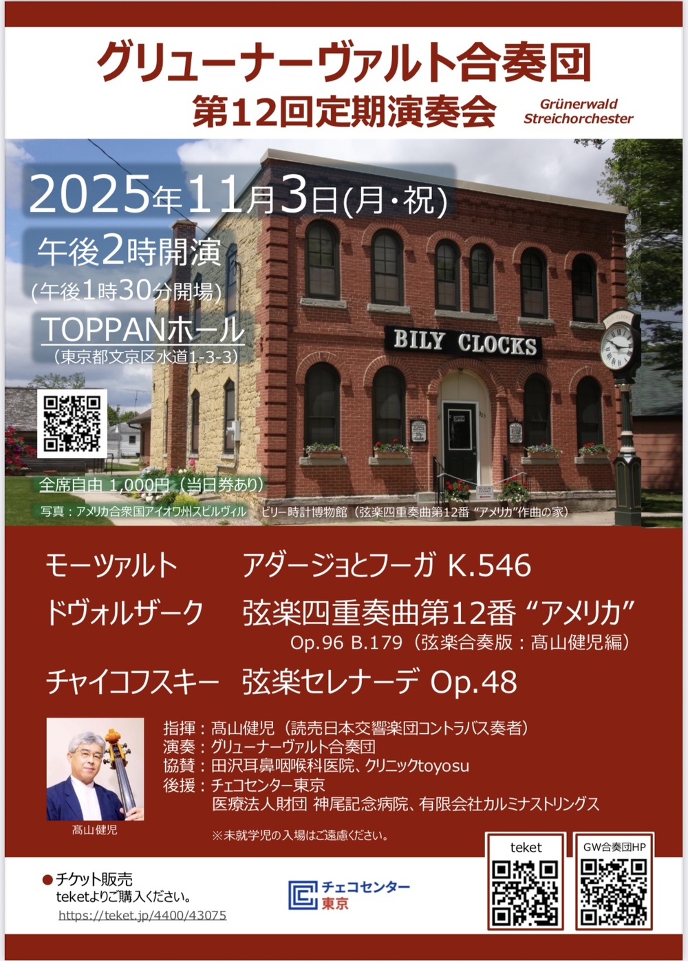 A.ドヴォルザーク 弦楽四重奏曲第12番 《アメリカ》Op.96 B.179(弦楽合奏版︓髙⼭健児編)