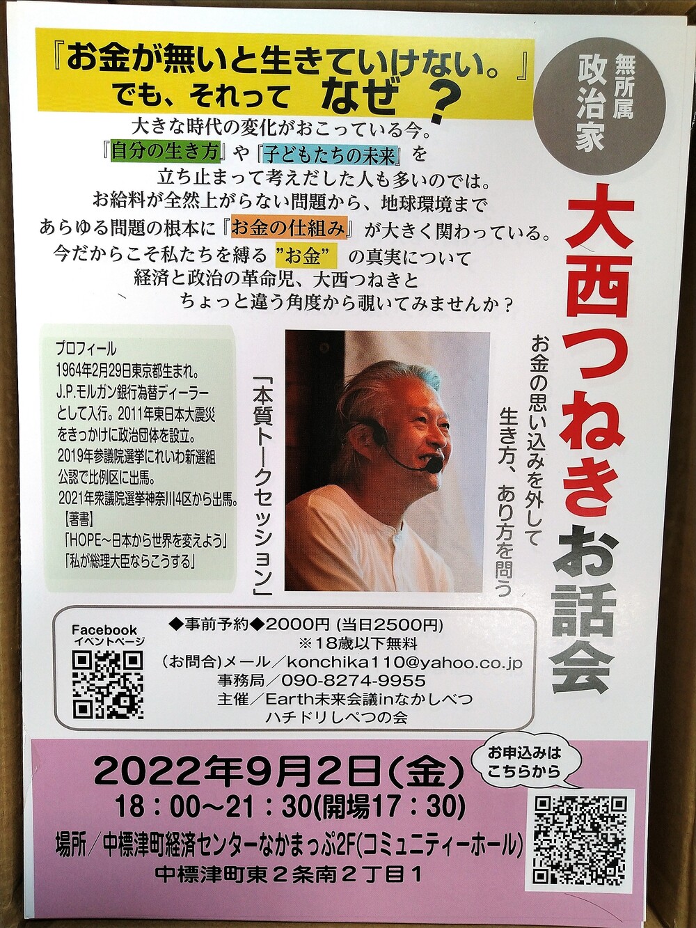 皆さまぜひ”大西つねきお話会”に参加して、その答えを見つけに来てください(^^)b