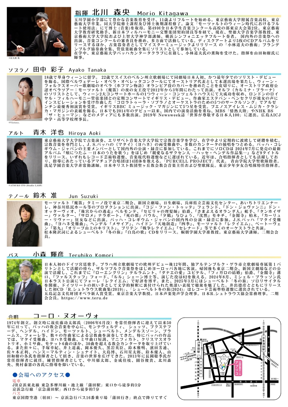 ソリスト:Sop.田中彩子、Alt.青木洋也、Ten.鈴木准、Bass小森輝彦