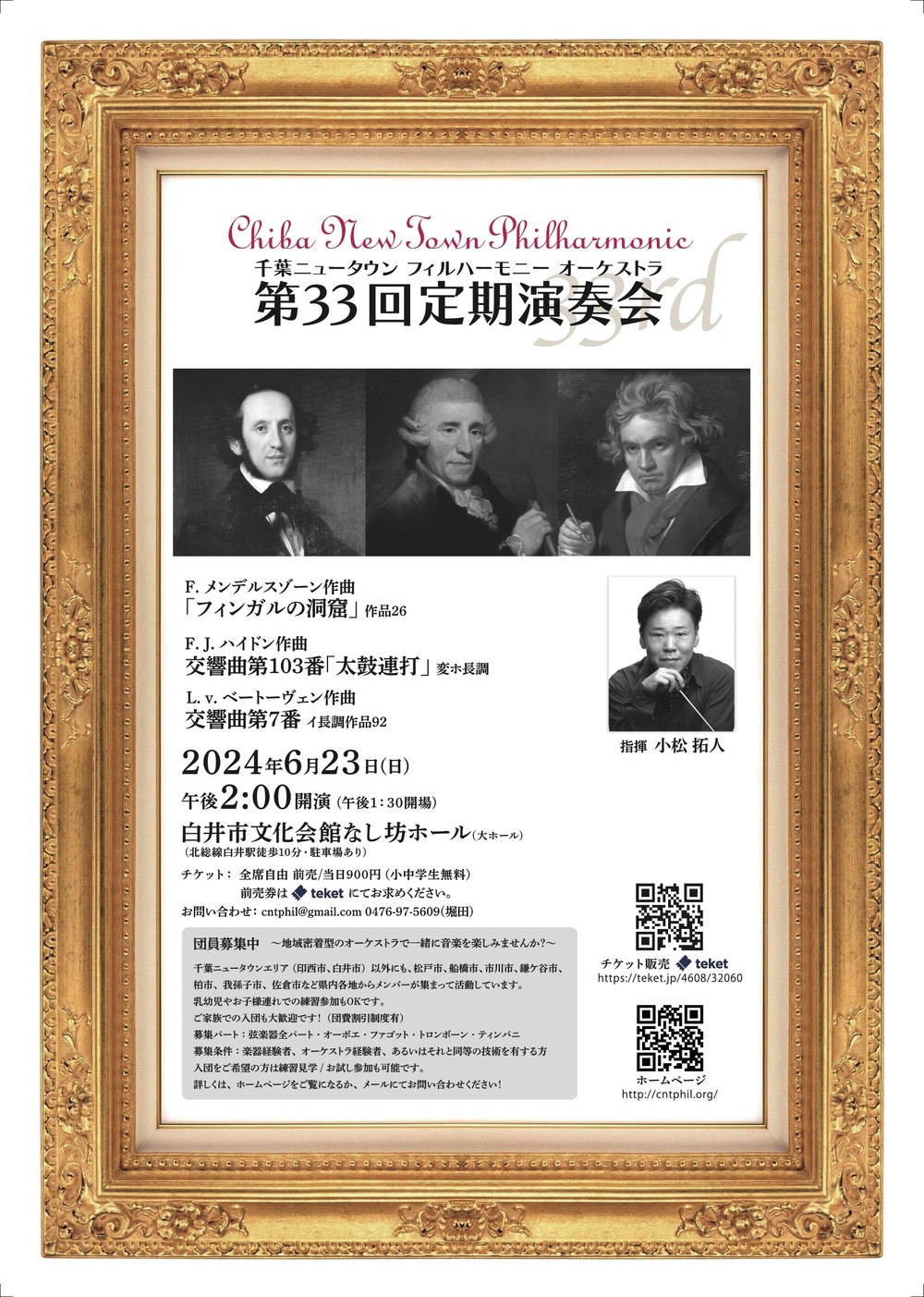 指揮者はアマオケでの人気も高い小松拓人さん。当オーケストラ初登場であり、新たなコラボレーションがどんな音楽を生み出すのか楽しみです。