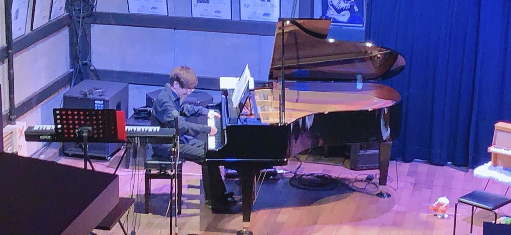 ピアノソロ、クラリネットとおもちゃ楽器アンサンブル