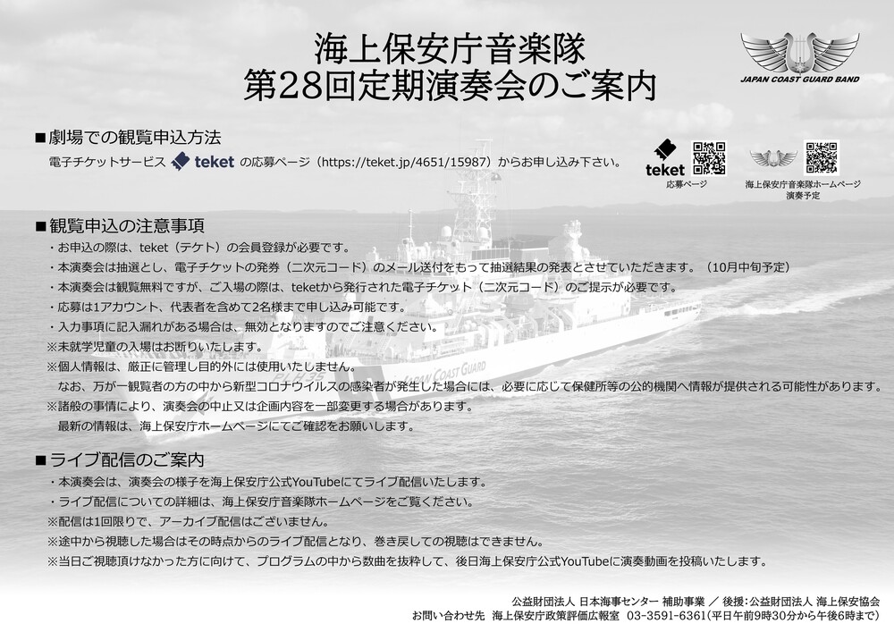 ・本演奏会は、演奏会の様子を海上保安庁公式YouTubeにてライブ配信いたします。