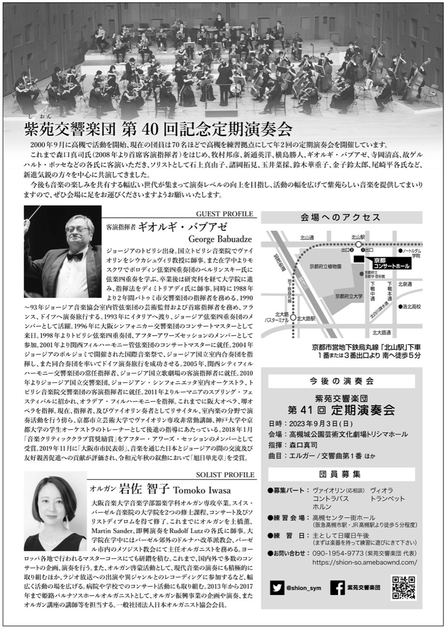 紫苑交響楽団(しおんこうきょうがくだん)は、2000年9月に立ち上げられたアマチュアオーケストラで、大阪、京都など関西一円の社会人、学生が中心になって活動しています。