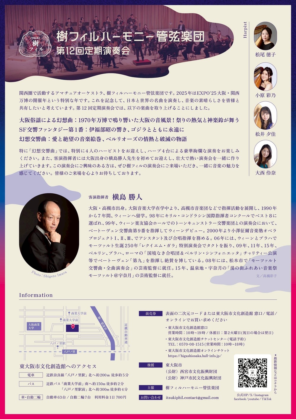 この演奏会にご興味のある方は、ぜひ樹フィルの演奏会にご来場いただき、一緒に音楽の魅力を感じてください。皆様のご来場を心よりお待ちしております。