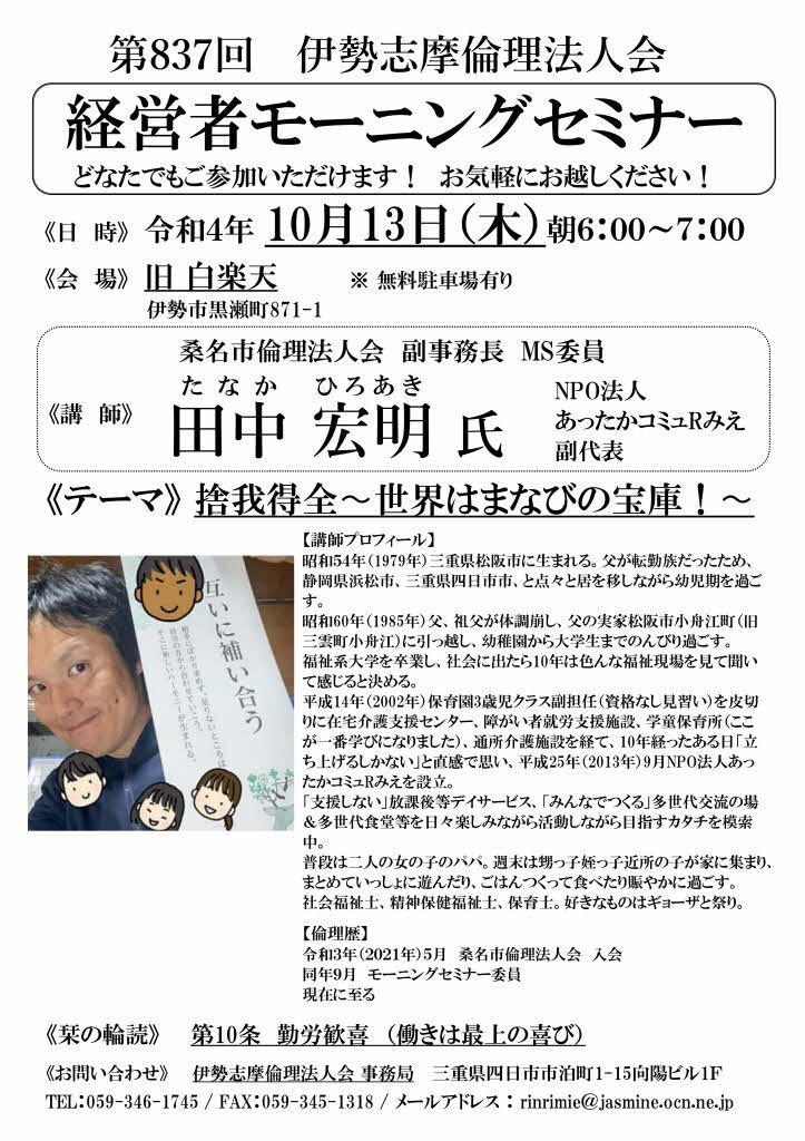 その他のお問い合わせ先:伊勢志摩倫理法人会 専任幹事 河村 幸信