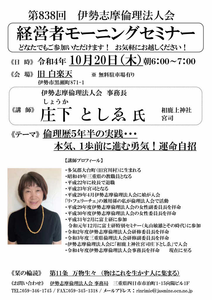 伊勢志摩倫理法人会 事務長