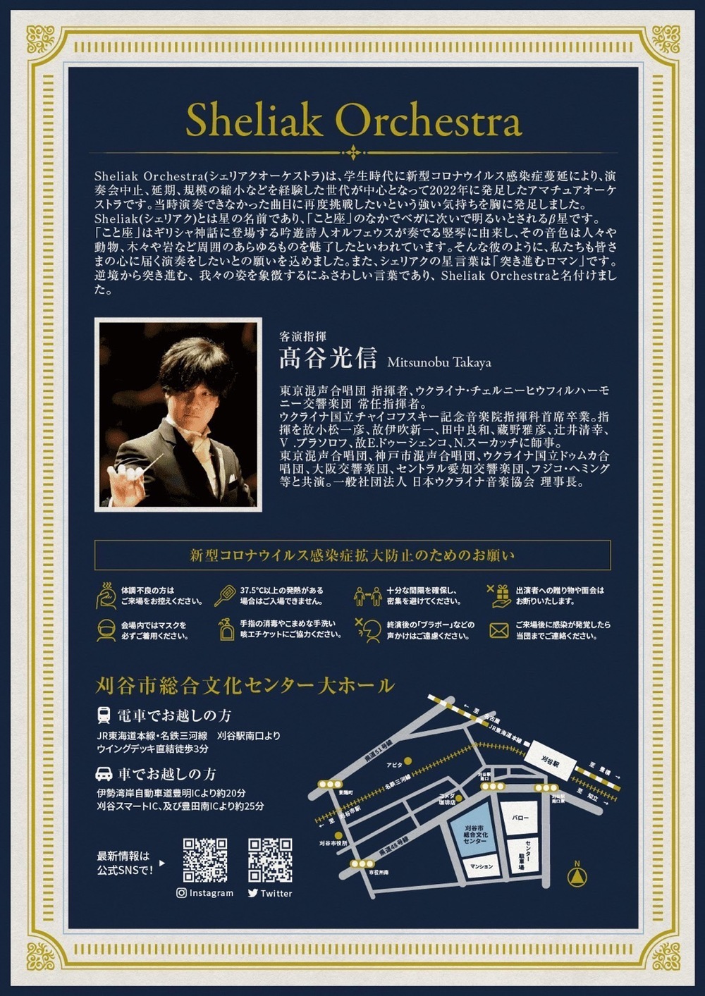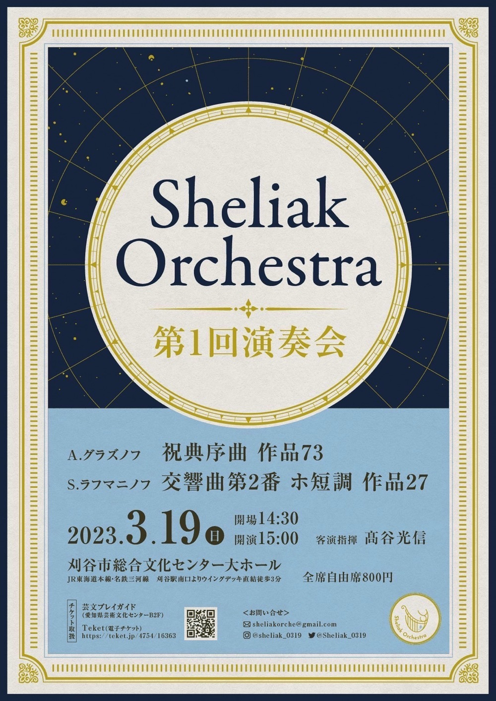 2022年1月に名古屋の学生オーケストラOBを中心に発足したアマチュアオーケストラです。 学生時代、感染症の蔓延により演奏会の中止やプログラム変更に見舞われ、取り組むことのできなかった曲目に再度挑戦しようという思いを胸に発足しました。 Sheliakの星言葉である「突き進むロマン」を軸に豊麗な音楽を追求します。