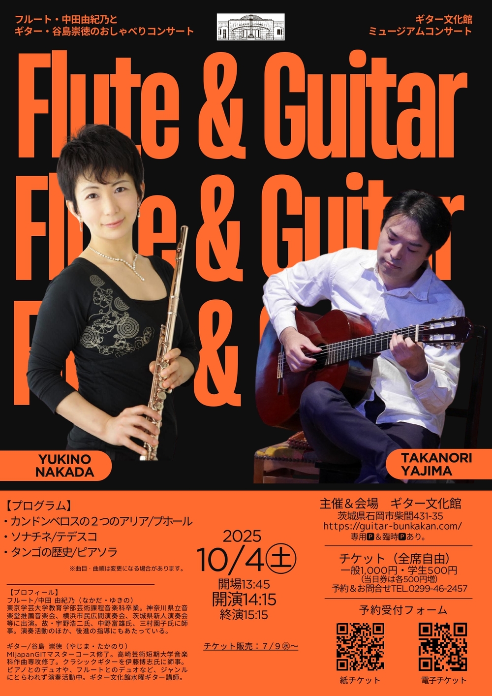 笠間市在住のフルート奏者中田由紀乃と、水戸市在住のギタリスト谷島崇徳。