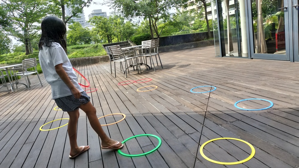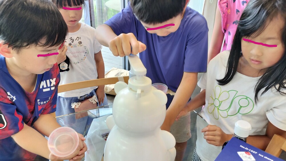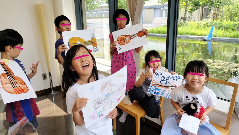 A かき氷づくり、折り紙、トランプ、絵具、工作グッズ、中庭での”けんけんぱ”など複数ご用意します。ご希望があれば引き続き楽器体験をしていただくこともできます。