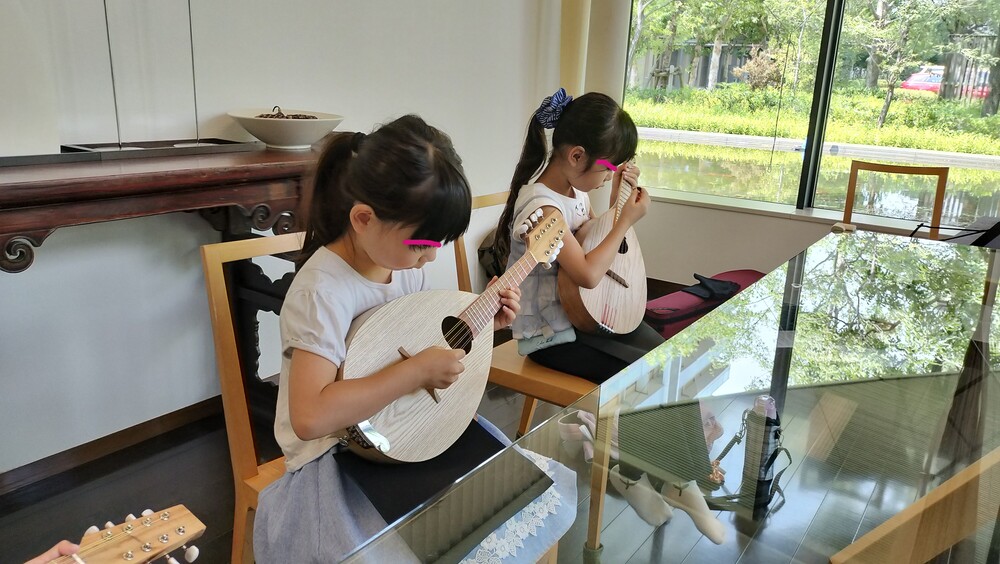 A 最初に音楽家が生演奏を披露します。その後、お子さま用の楽器(クラシックギターまたはマンドリン)を弾いて楽しんでいただきます。