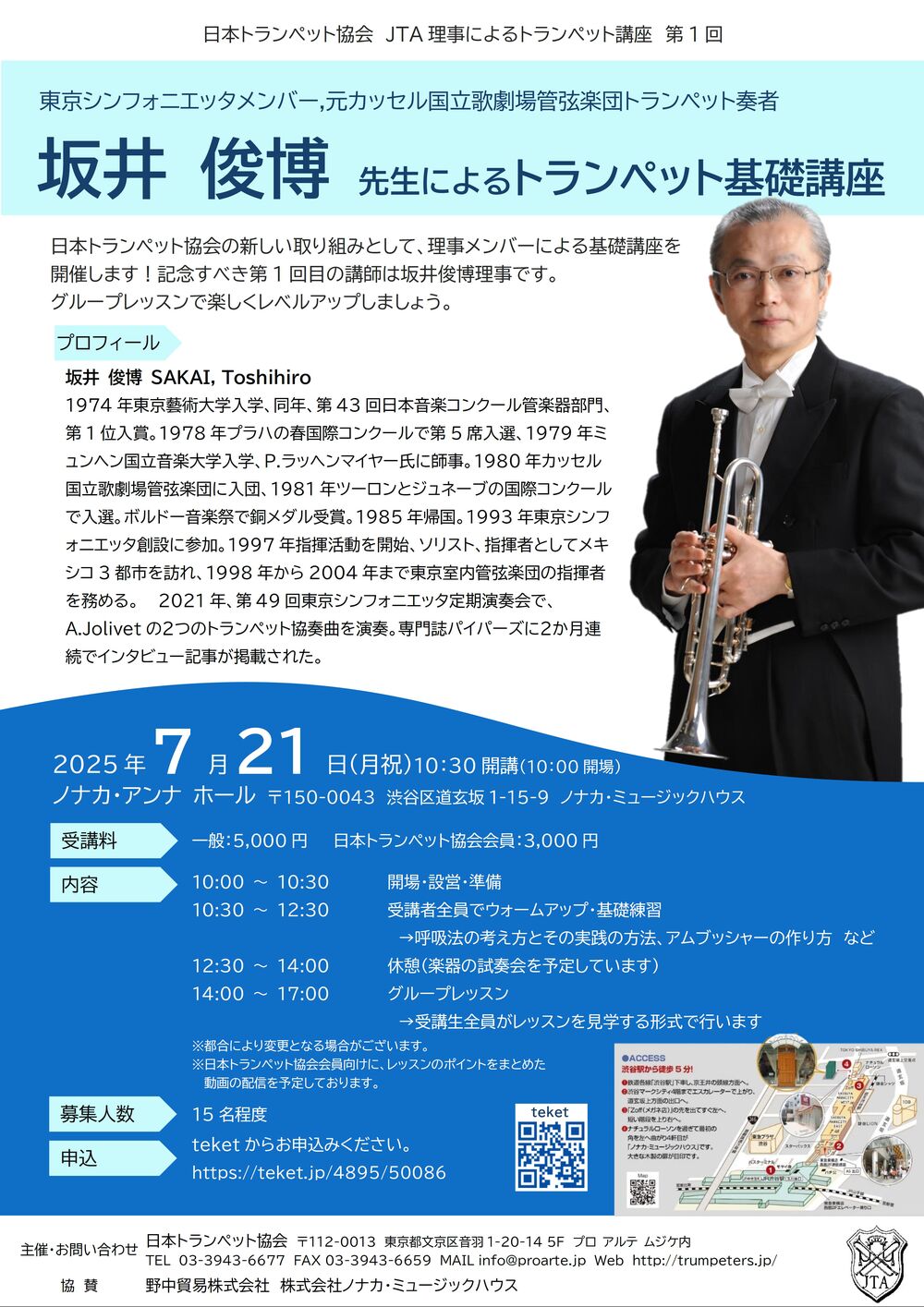 日本トランペット協会の新しい取り組みとして、理事メンバーによる講座を開催します!記念すべき第1回目の講師は坂井俊博理事です。