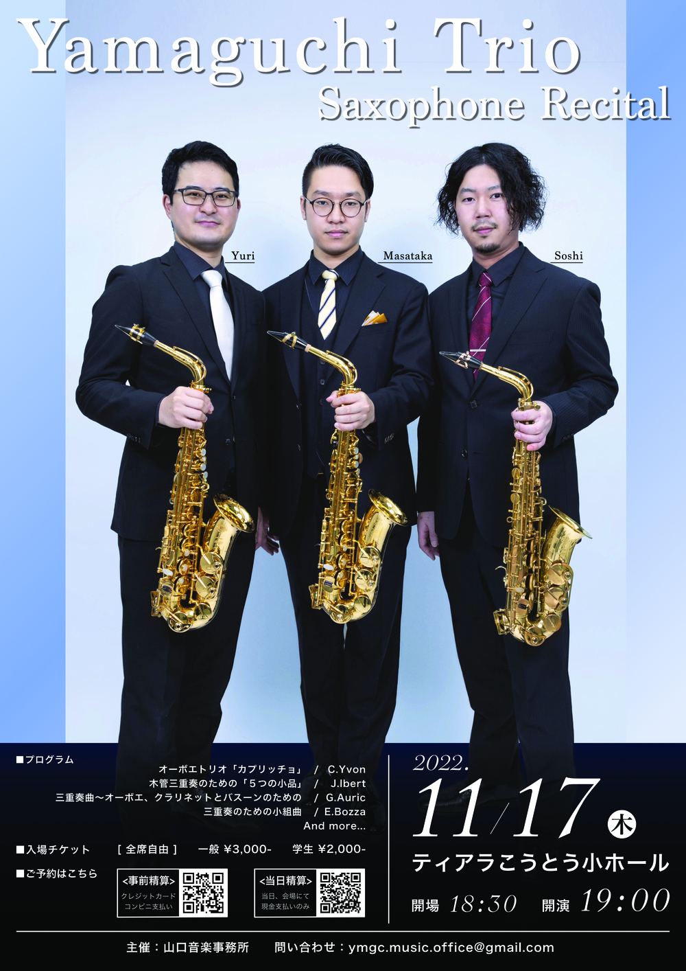 その他のお問い合わせ先:ymgc.music.office@gmail.com (主催:山口音楽事務所)