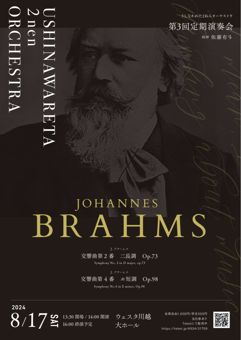 第1回にてドヴォルザーク・チャイコフスキーのダブルシンフォニーに挑んだ私たちですが、今回はブラームス交響曲第2番と第4番、再びダブルシンフォニーに挑みます。オーケストラだけでなく様々な壁を乗り越えきたた私たちのブラームスを是非お楽しみください。