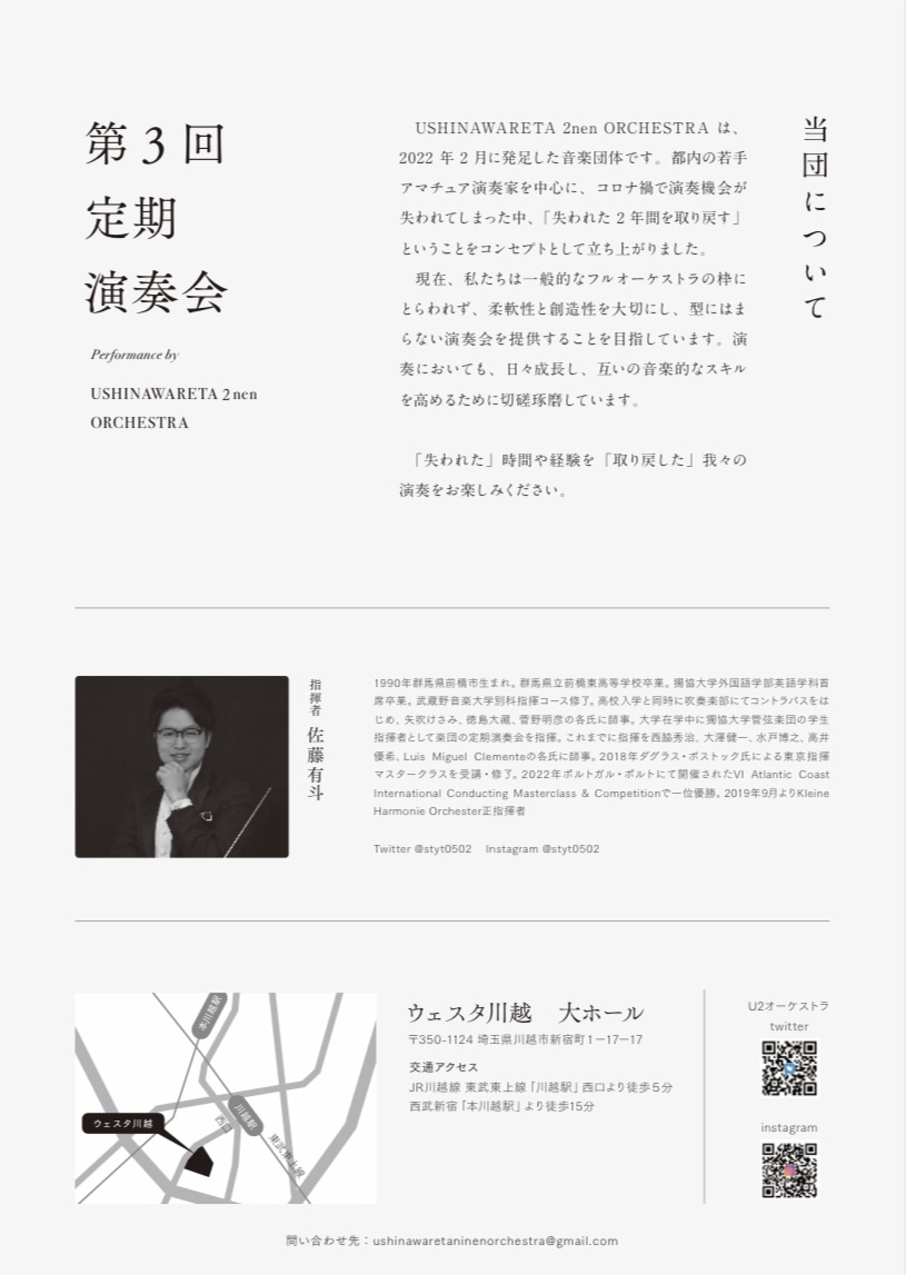 その他のお問い合わせ先:ushinawaretaninenorchestra@gmail.com