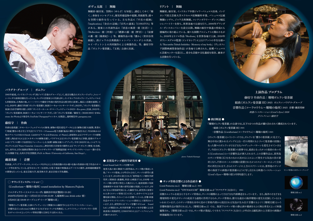 「珊瑚ガムラン曼荼羅」の公演では、以下の2つの作品が織り合わされて構成されています。