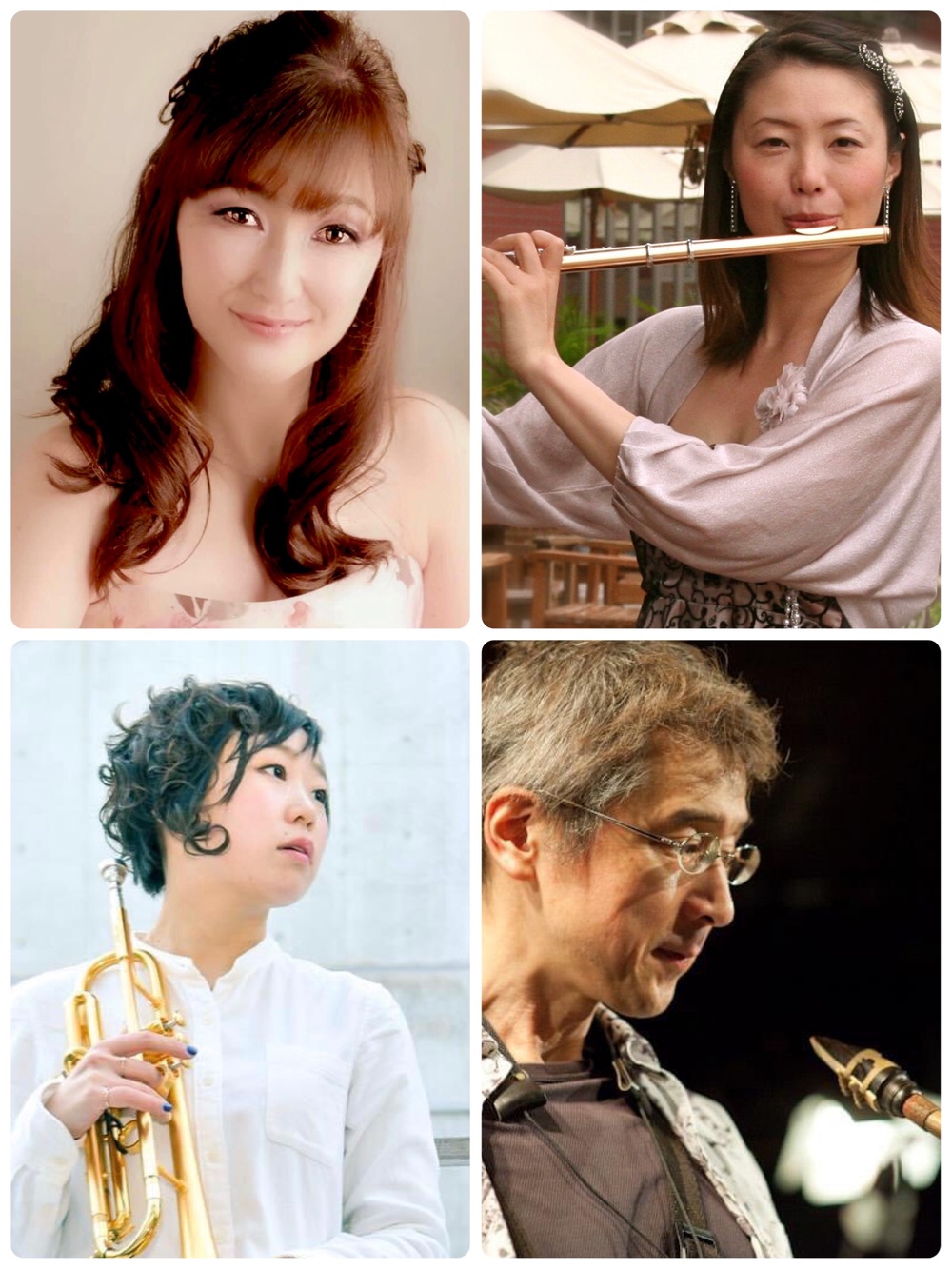 ヴォーカル星野由美子、フルート稲見郁恵、トランペット河原真彩、サックス伴田 裕、ピアノ川村 健、ベース伊地知正憲、ドラム小山太郎