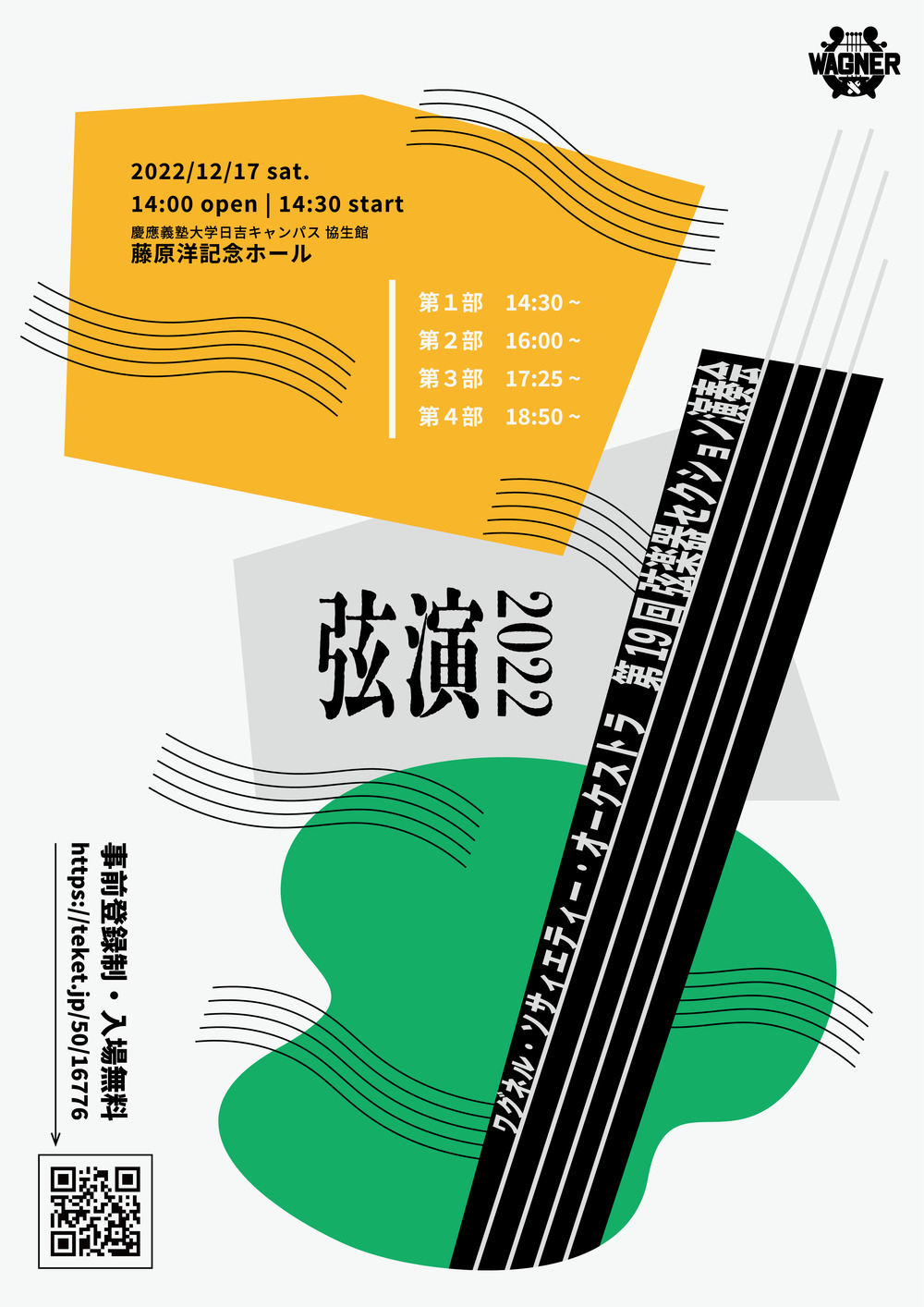 本演奏会は、弊団の弦楽セクションのメンバーが中心に自由にグループを作り、弦楽四重奏など様々な室内楽の演奏をお届けします。普段の活動ではオーケストラの楽曲の練習が中心であるため、こうした少人数のアンサンブルに取り組む機会は団員にとって貴重であり、弦楽セクションのメンバーそれぞれの音色や個性を感じて頂ける良い機会だと思っております。定期演奏会とは一味違ったワグネルサウンドをお楽しみください。