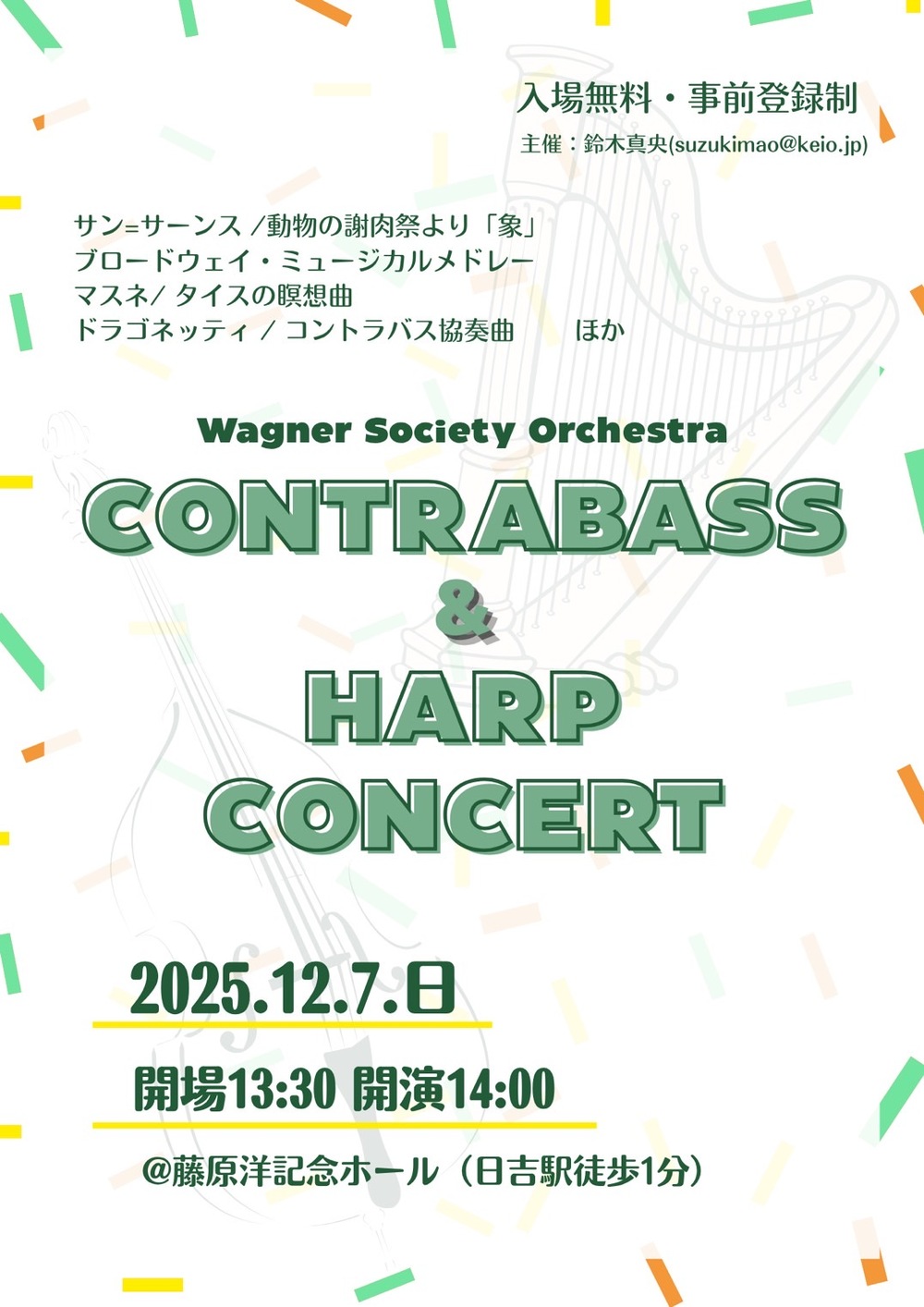 慶應義塾ワグネル・ソサィエティー・オーケストラ(公認学生団体)コントラバスパート&ハープパート